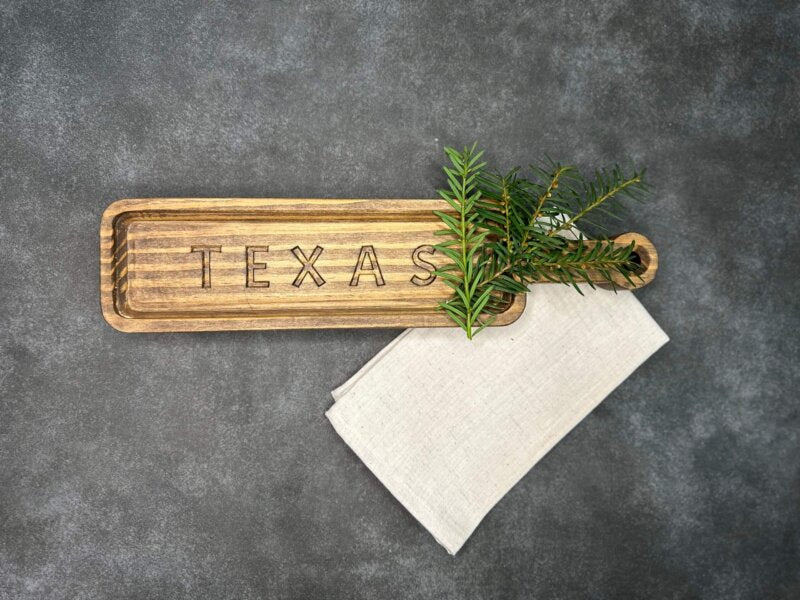Embrace the spirit of Texas with our Natural Wooden Platter. Order yours today and add a slice of Texas to your home!