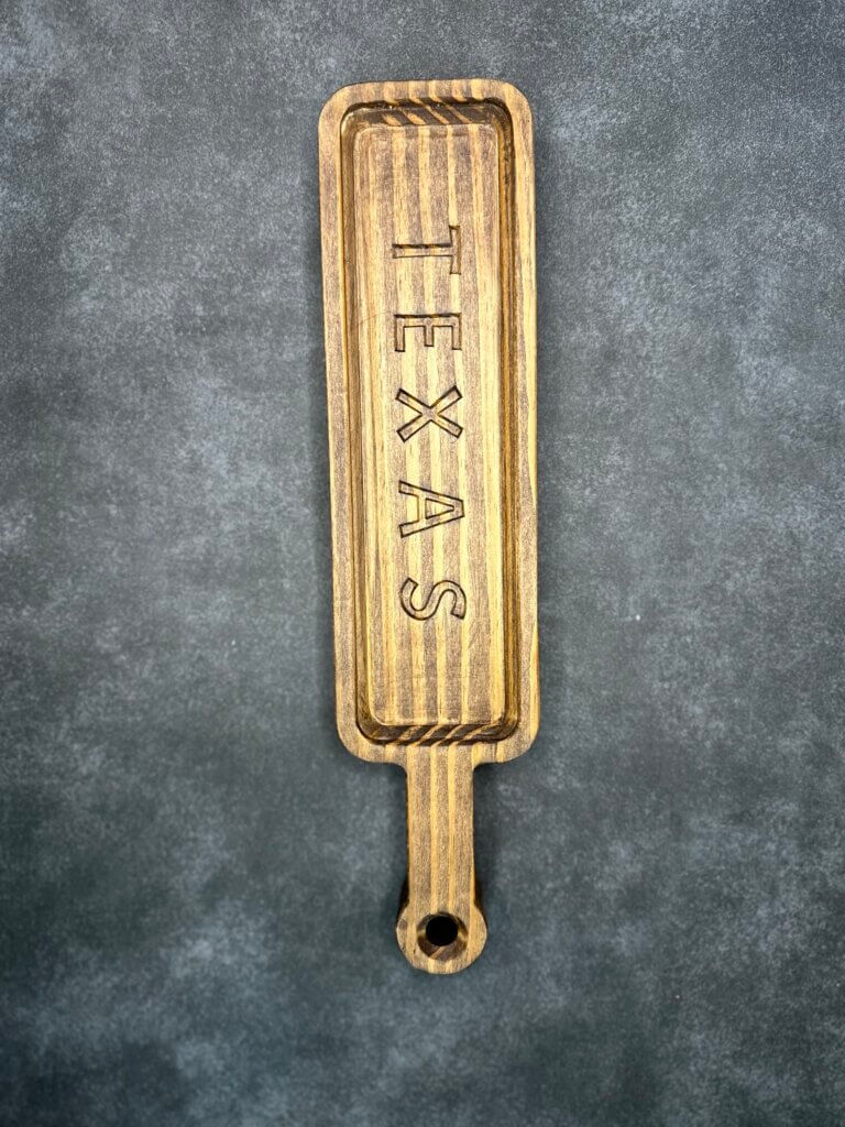 Introducing our exquisite 12-inch Natural Wooden Platter, meticulously crafted to bring a touch of Texas charm to your home. Made from pine, this serving paddle tray is not just a utensil but a statement of style and tradition.