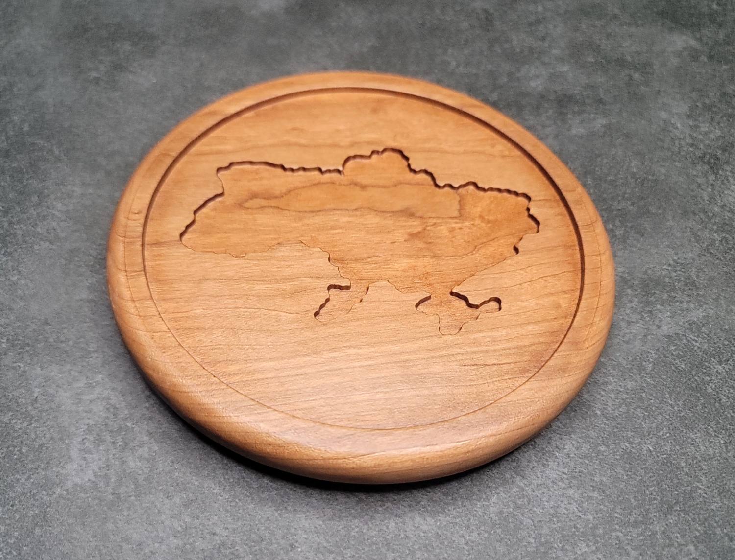 6'' Small Wooden Plate with Ukraine Country Shape Engraving – Cherry Wood Decorative Tray