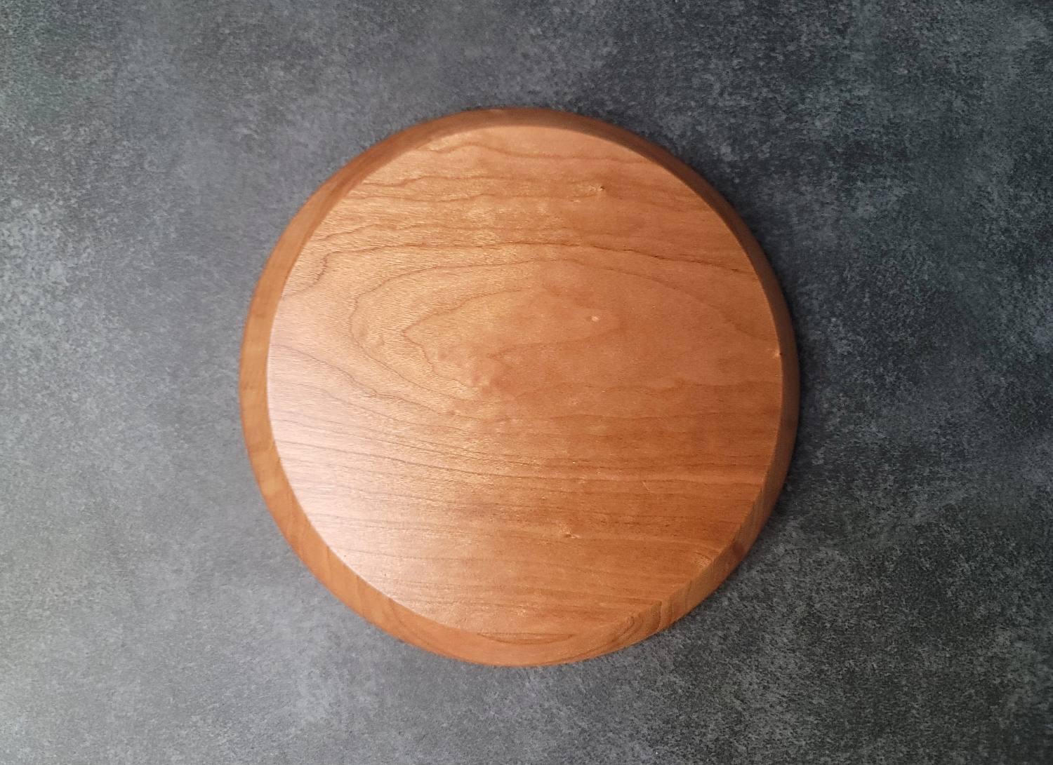 Measuring 6 inches in diameter and 0.75 inches thick, its compact size makes it an ideal accent piece for smaller spaces. Whether hung on the wall or displayed on a shelf, this handcrafted cherry wood plate will bring warmth and character to your décor.
