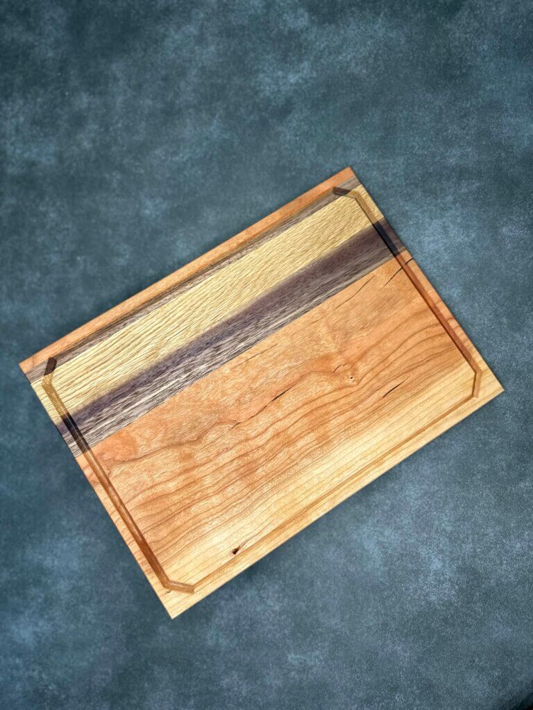 Enhance your kitchen with our White Oak, Cherry, and Walnut Cutting Board, where functionality meets elegance and quality.
