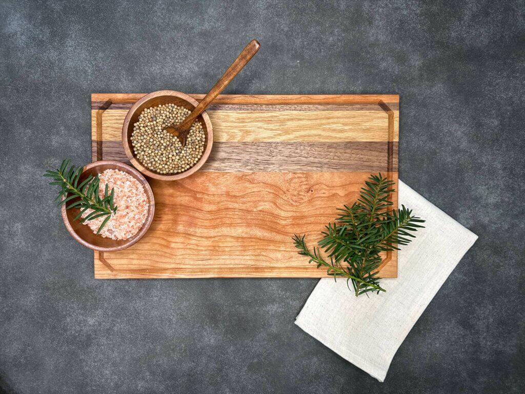 Enhance your kitchen with our White Oak, Cherry, and Walnut Cutting Board, where functionality meets elegance and quality.