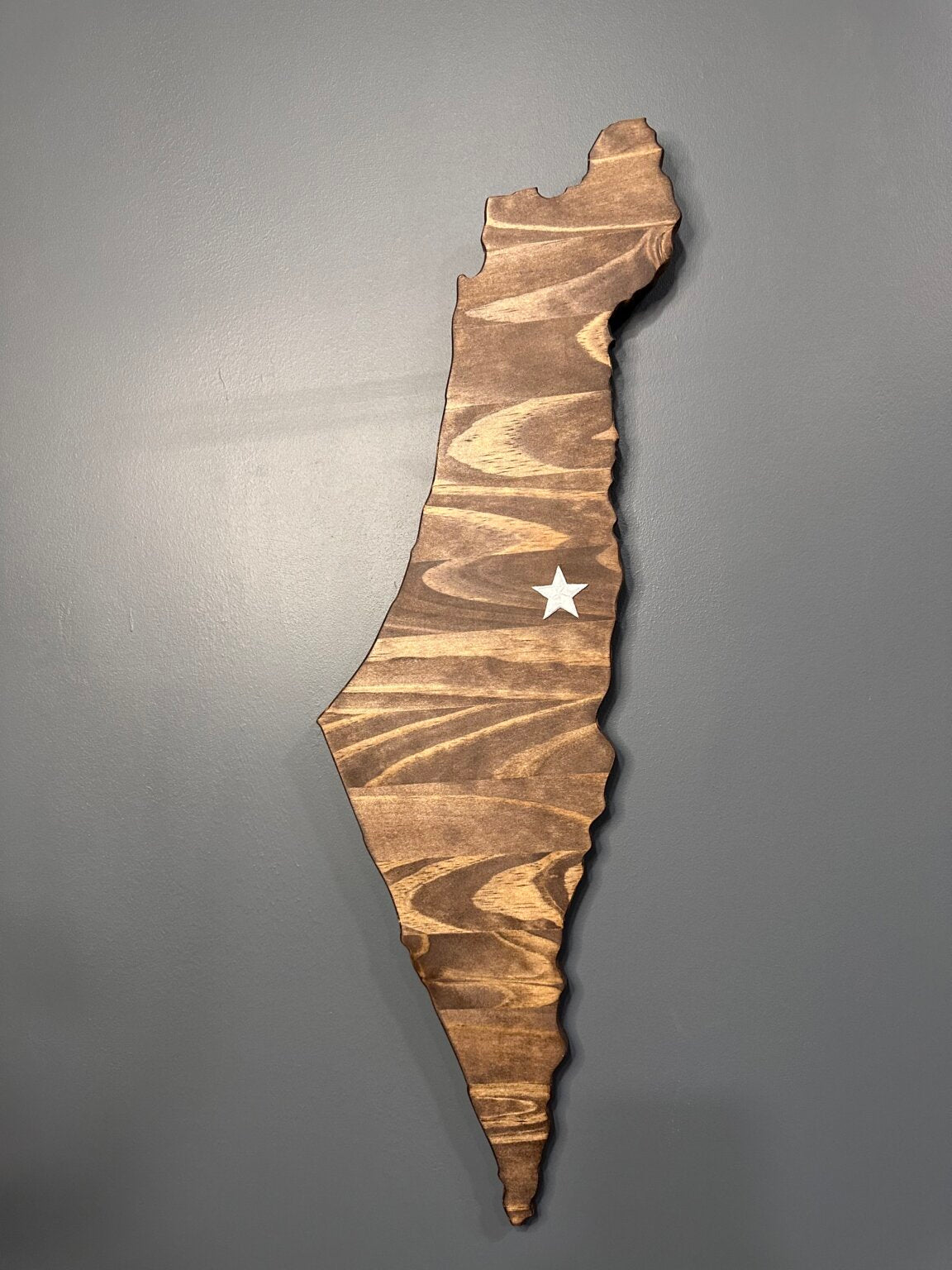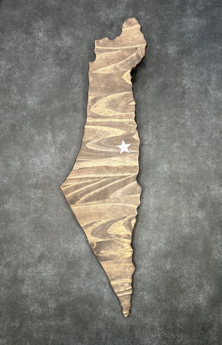 Elevate your decor with our Israel Shape Cedar Wall Art, a symbol of heritage and beauty in one.