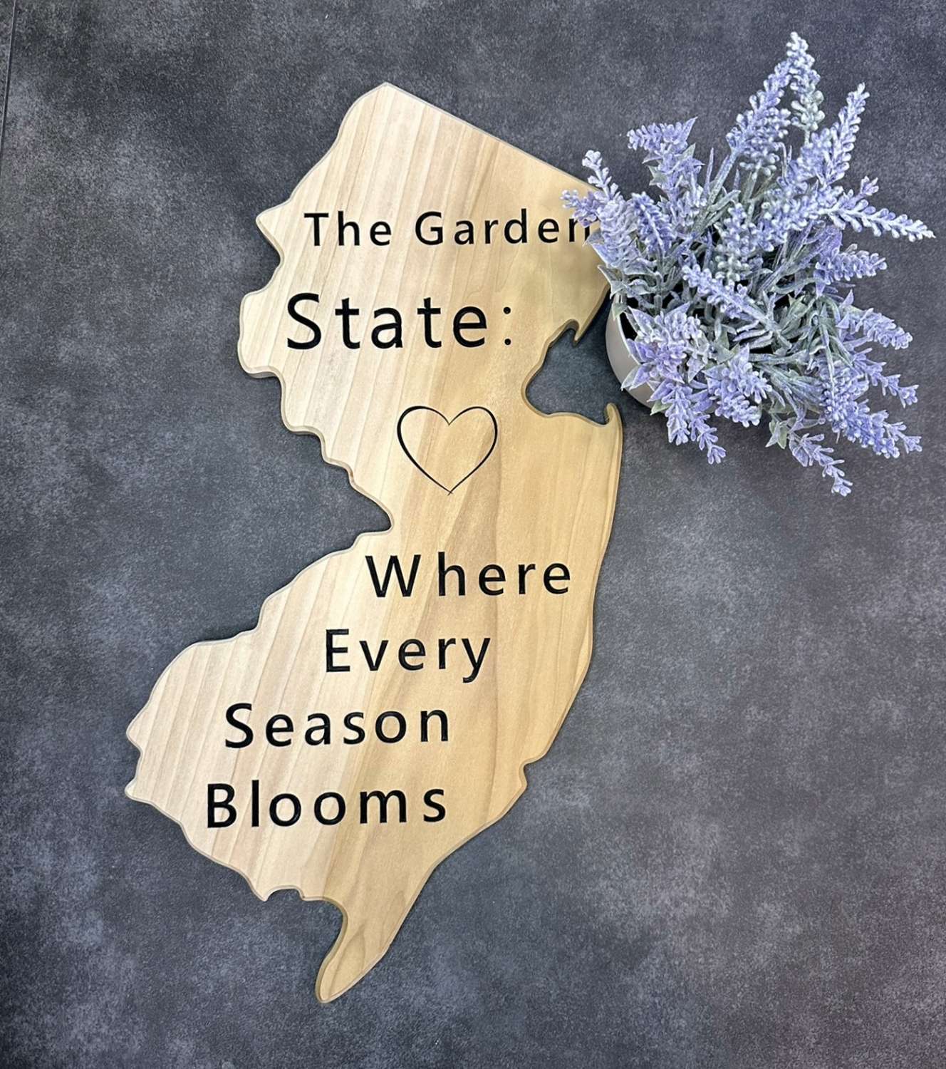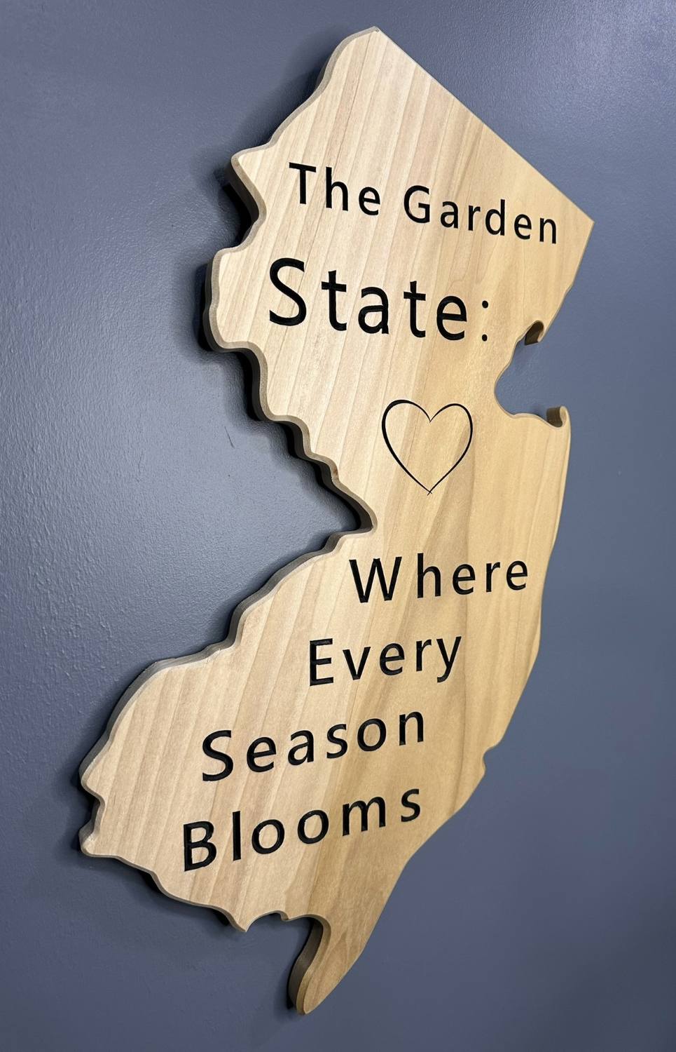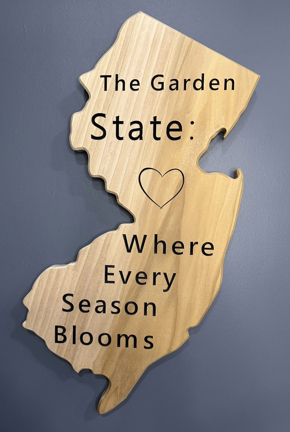 New Jersey State Wooden Wall Art Cut-Off Sign - Poplar Wood | The Garden State: Where Every Season Blooms