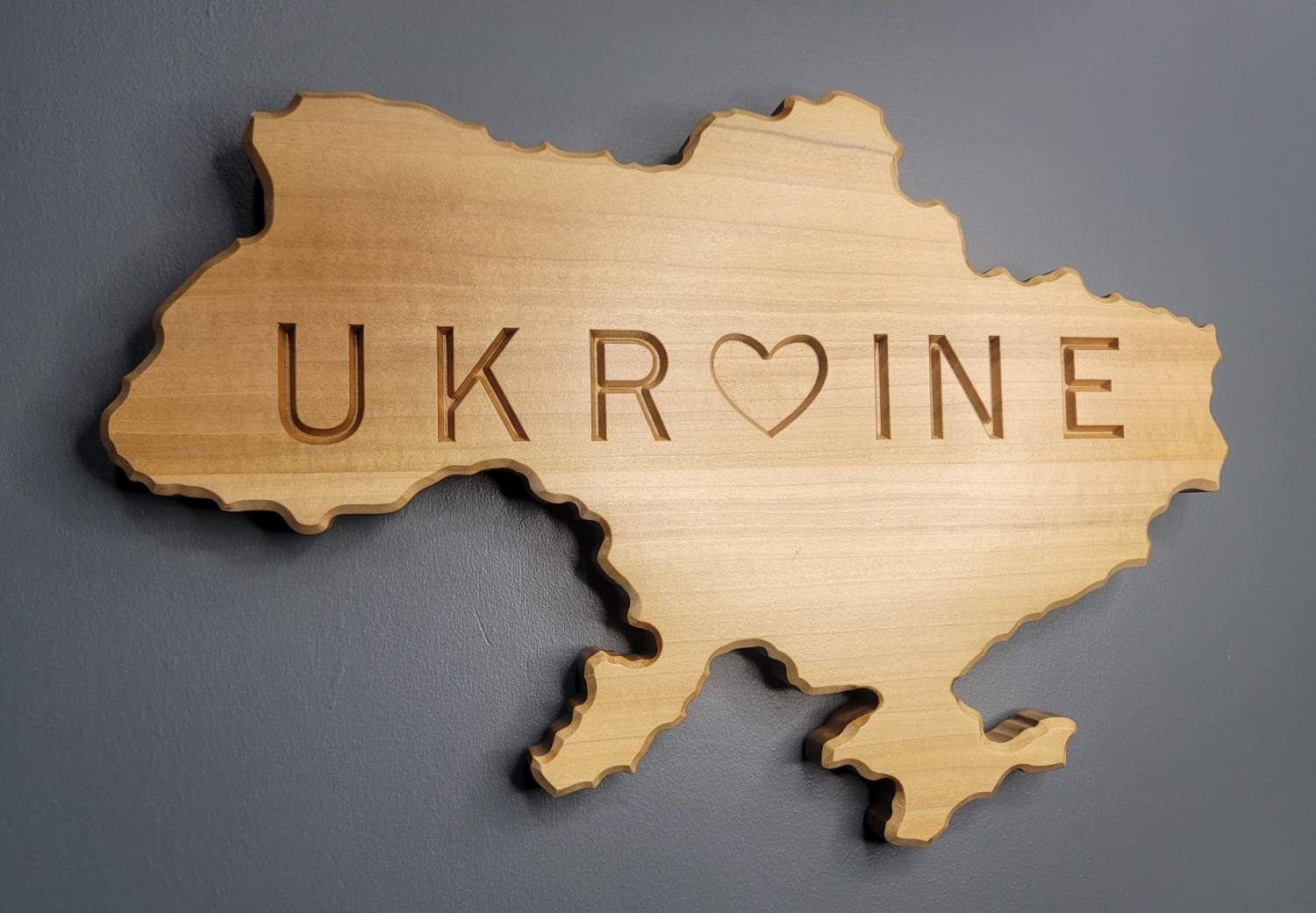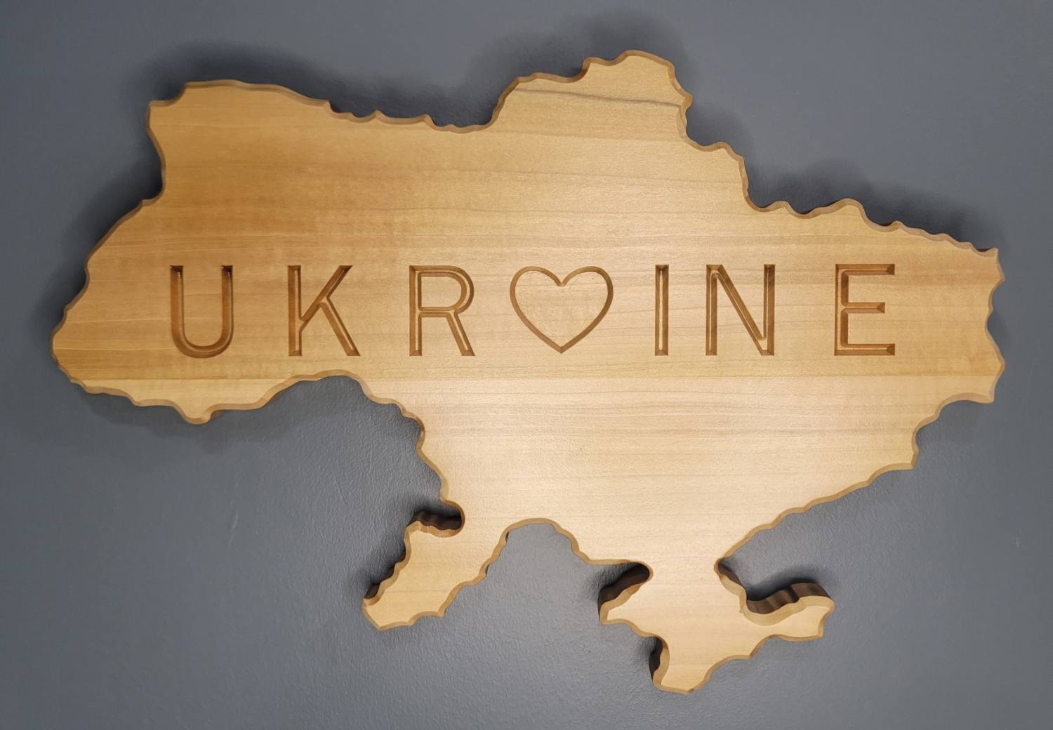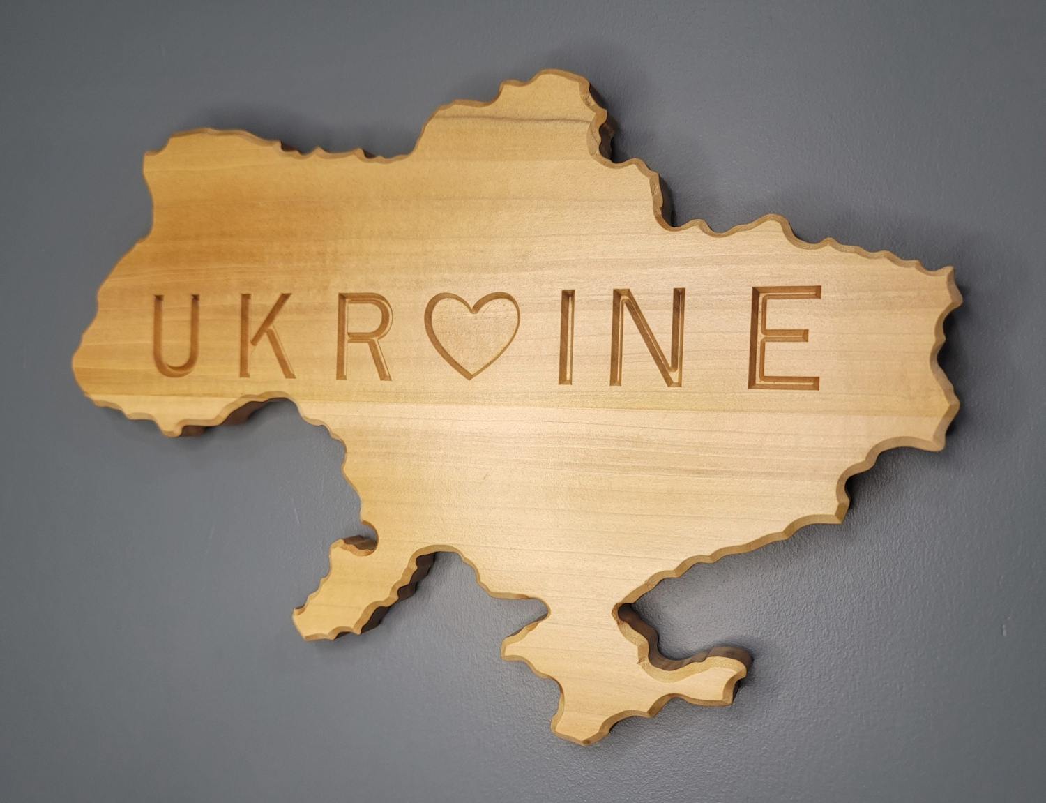 Small 14''x9.5'' - Ukraine Country Shape Wooden Wall Art – Handcrafted Poplar Wood Décor with Customizable Engraving