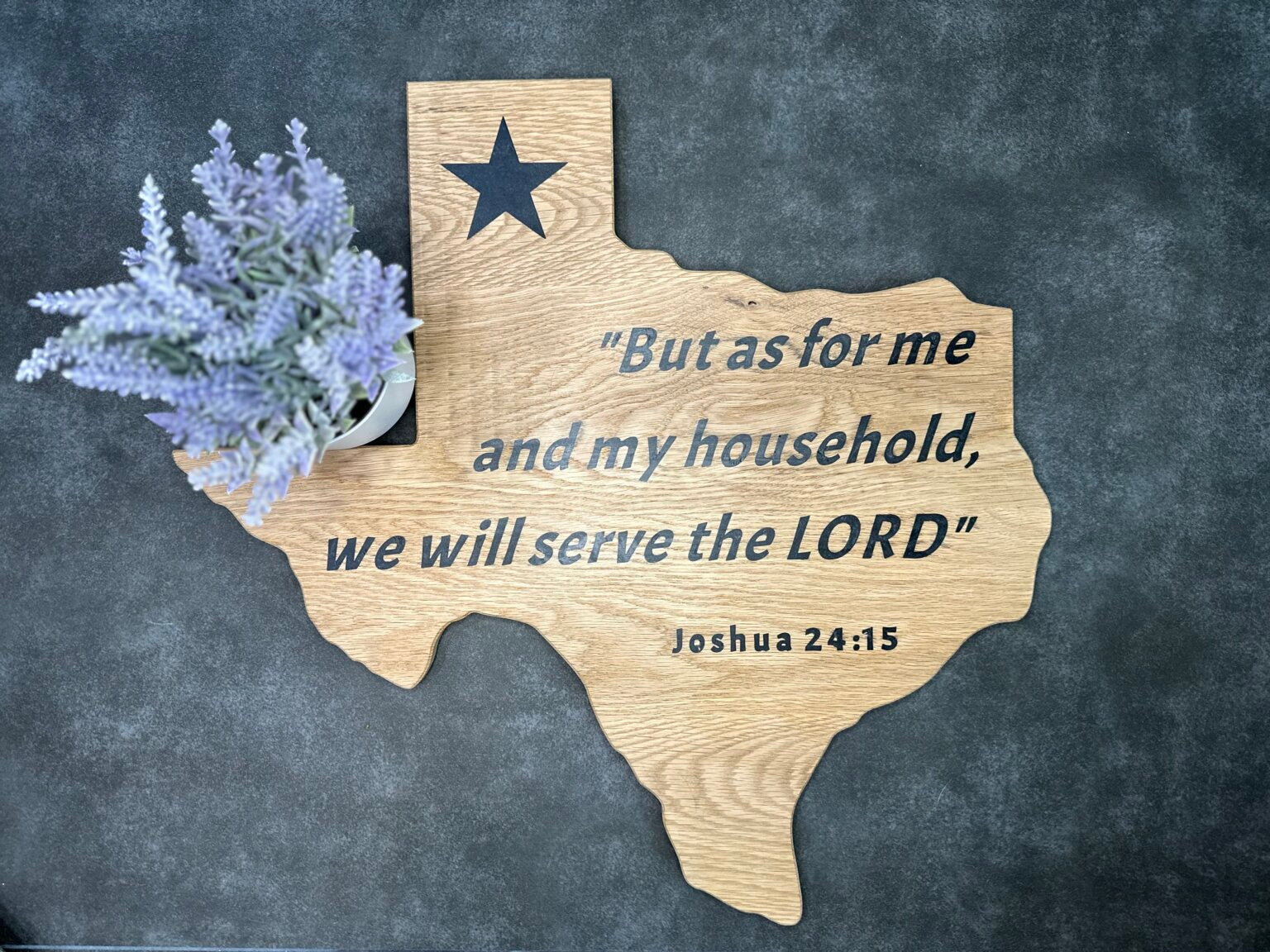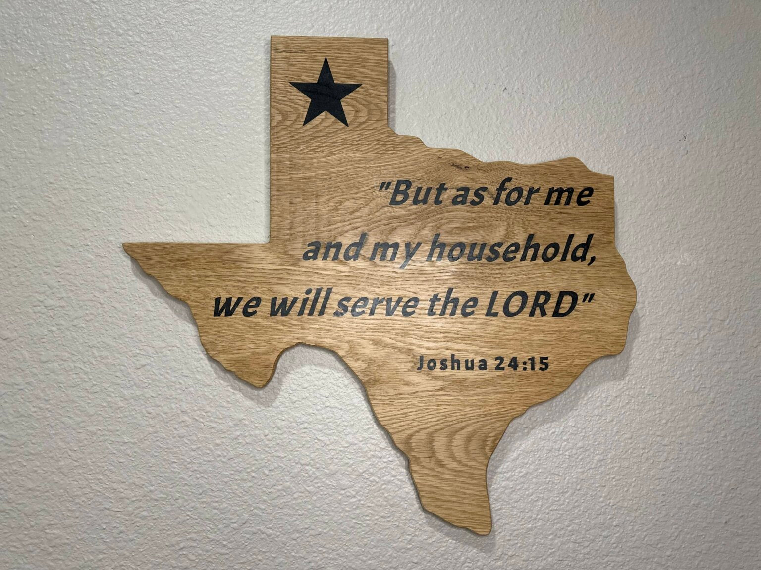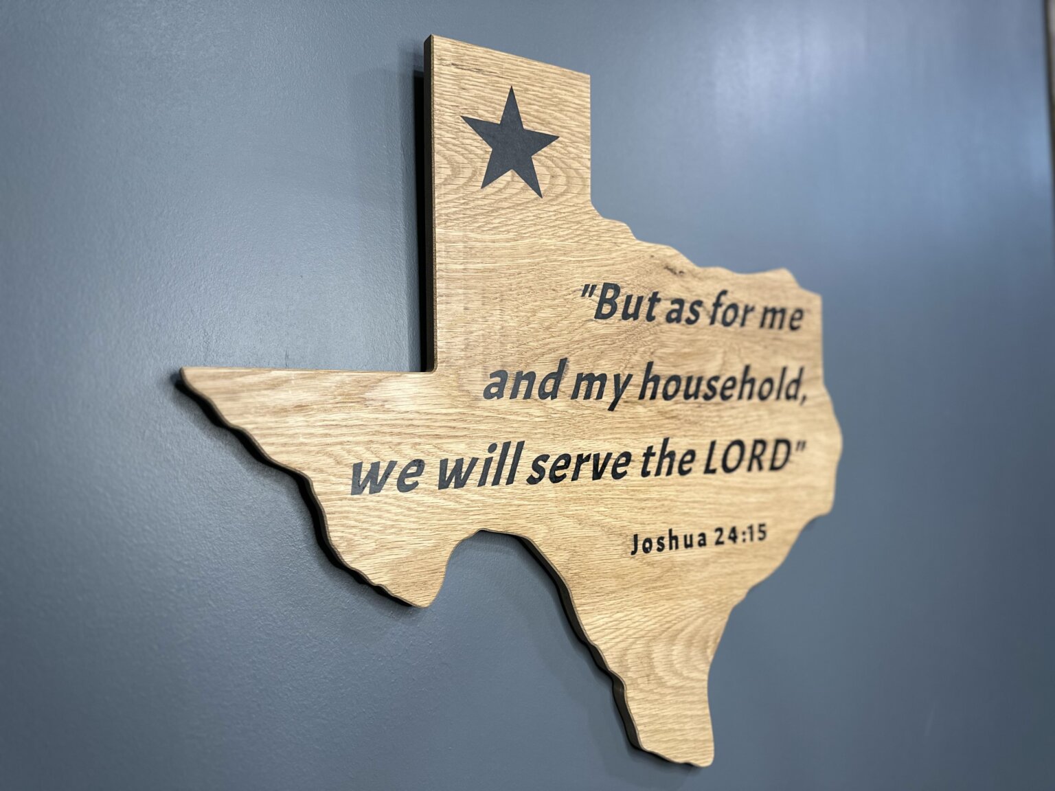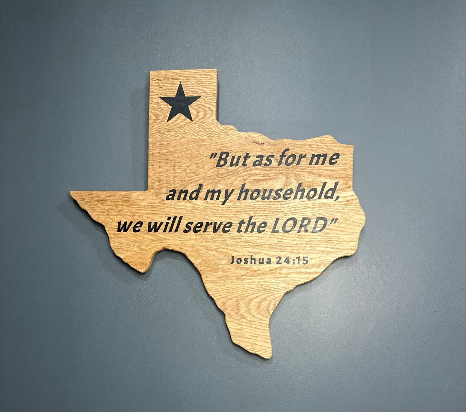 Texas Shape Wall Art – Wooden Cutout with the Bible scripture – Black Text