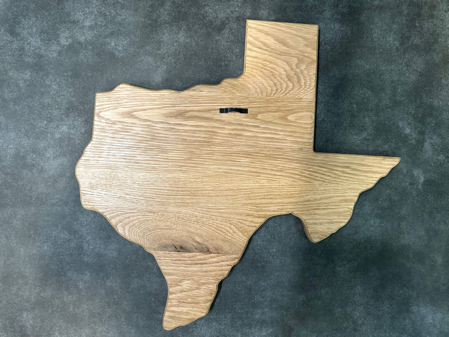 Discover the elegance of our White Oak Texas Wall Art, now in a convenient 20-inch by 20-inch size. This exquisite piece is not just a depiction of the Lone Star State, but a testament to quality and craftsmanship, made from the premium and durable material of white oak. The text and the star are made from black epoxy.