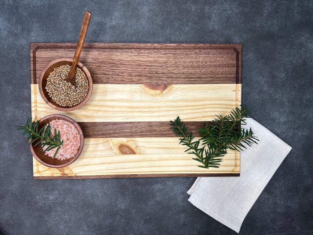 Wooden (Walnut and Pine) Chopping Block - 17 3/4" x 11 1/2" x 3/4" Wood Cutting Board